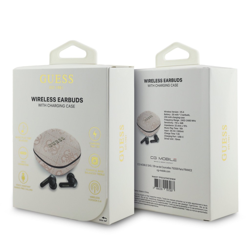 Vyberte si sluchátka Guess PU 4G Script Logo ENC TWS a užijte si hudbu i hovory bez kompromisů, kdekoliv a kdykoliv. Nečekejte a pořiďte si tento stylový kousek, který vám přinese nejen skvělý zvuk, ale také špetku elegance do vašeho každodenního života!