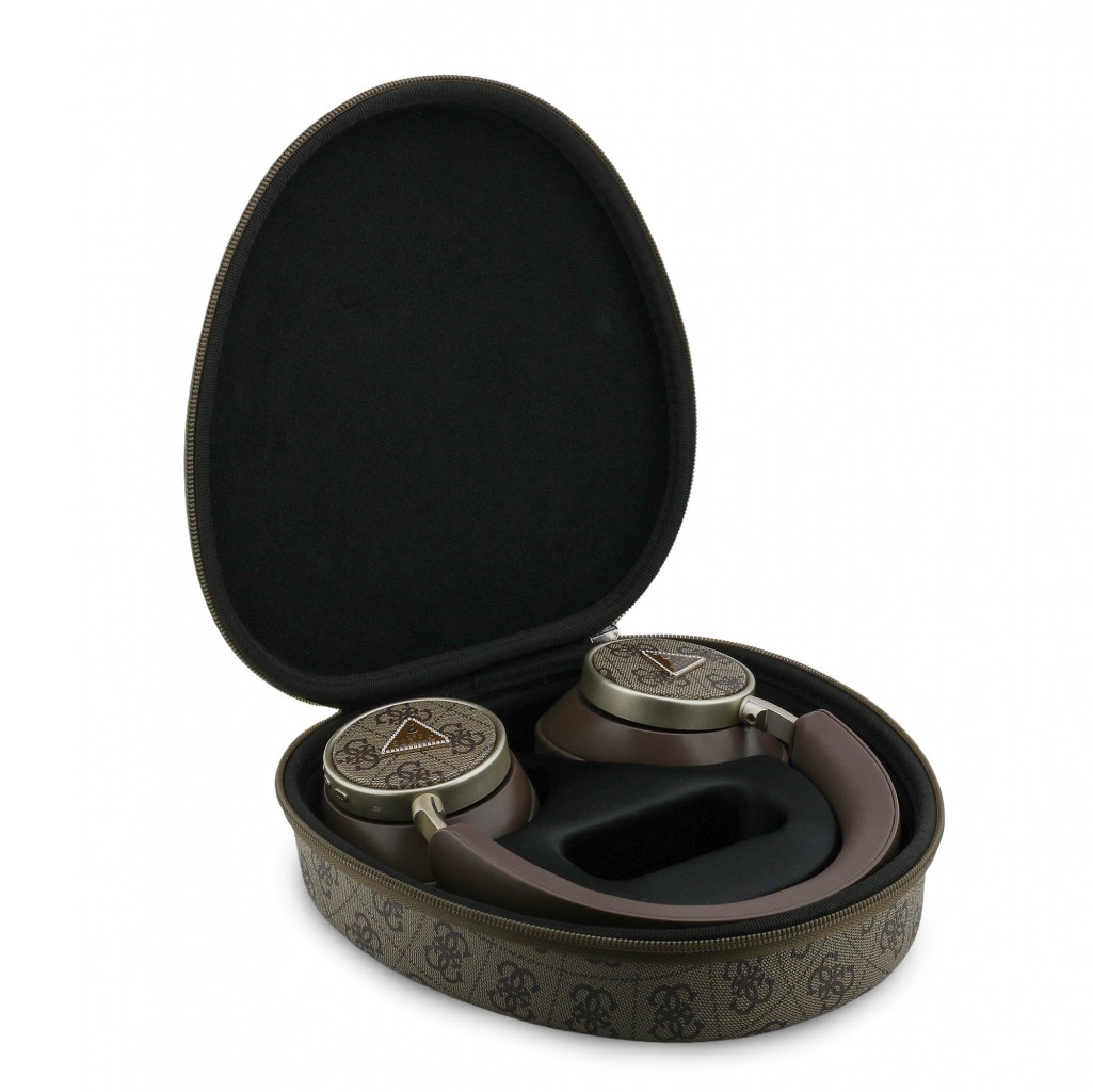 Sluchátka Guess PU 4G Triangle Logo se pyšní luxusním a propracovaným designem, který je pro značku Guess typický. Vnější strana náušníků a horní část hlavového mostu jsou potaženy kvalitním PU materiálem s elegantním reliéfním vzorem 4G. Dominantním prvkem na obou náušnících je zlaté trojúhelníkové logo Guess, které dodává sluchátkům punc exkluzivity. Konstrukce je pevná, ale zároveň lehká, s nastavitelným hlavovým mostem pro dokonalé přizpůsobení každému uživateli. Měkké a pohodlné náušníky zajišťují komfort i při dlouhodobém nošení a efektivně izolují okolní hluk. Součástí balení je také prémiové ochranné pouzdro na zip, které je ve stejném designu 4G a spolehlivě chrání sluchátka při přenášení.