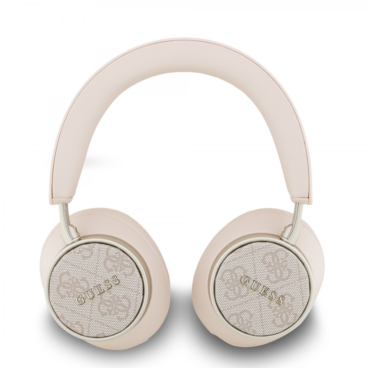 Vzhled těchto sluchátek je inspirován ikonickou estetikou značky Guess. Povrch náušníků i hlavového mostu je potažen kvalitní PU kůží v elegantním hnědém odstínu, kterou zdobí charakteristický texturovaný potisk s logem 4G. Celkový design doplňují precizně zpracované zlaté kovové prvky, které spojují náušníky s mostem. Na vnější straně každého sluchátka se nachází výrazné vystouplé zlaté logo Guess, které podtrhuje prestižní charakter produktu. Konstrukce je navržena s důrazem na ergonomii, náušníky jsou bohatě polstrované a měkké, což zajišťuje pohodlí i při dlouhých hodinách poslechu. Ovládací prvky a nabíjecí port jsou diskrétně umístěny na spodní hraně, aby nerušily čisté linie tohoto módního kousku.