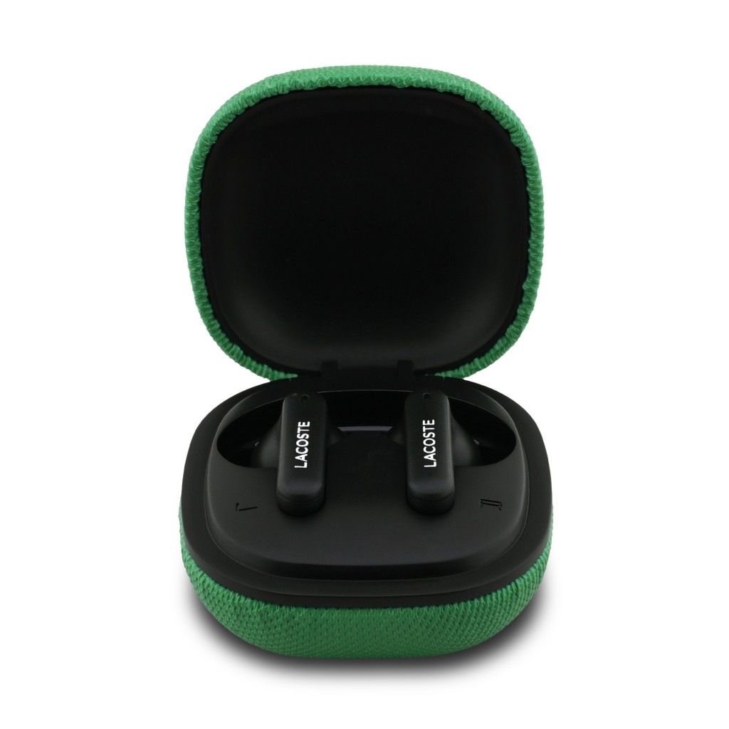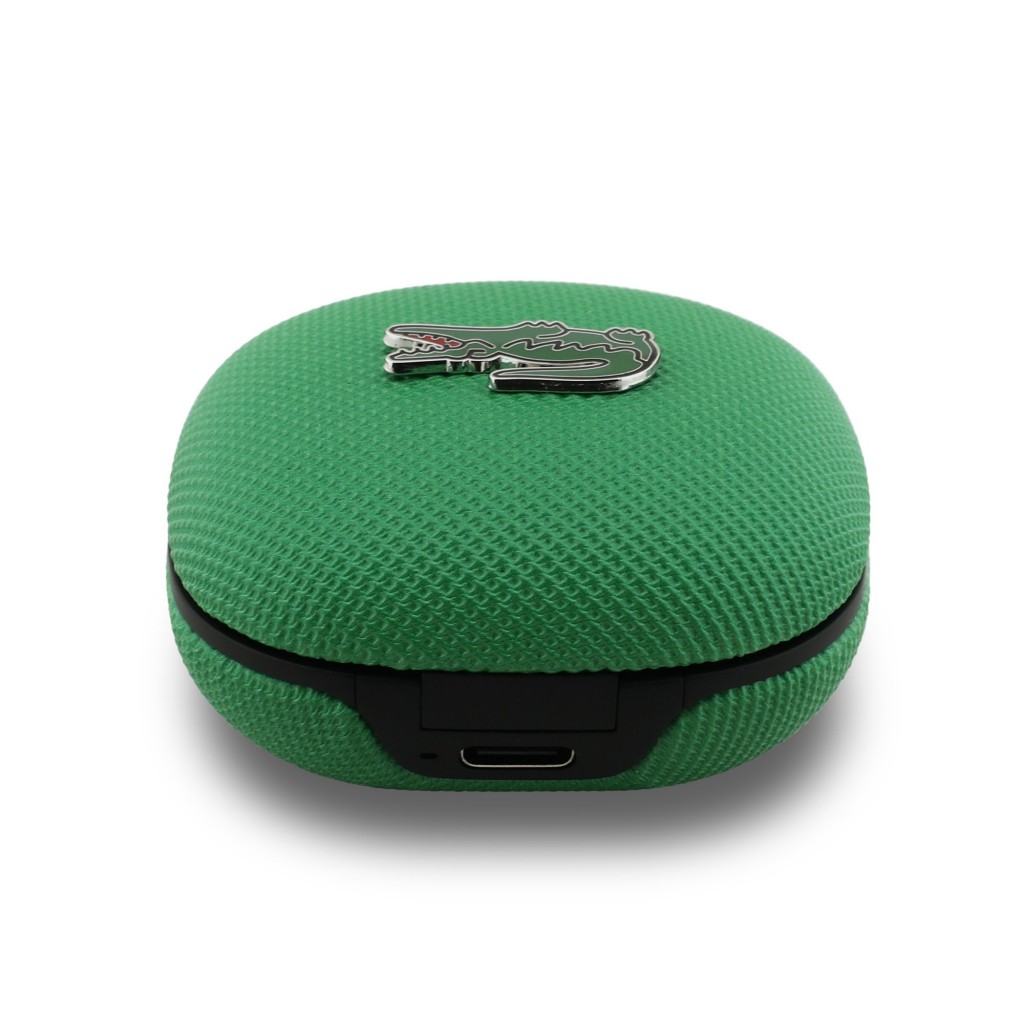 Sluchátka Lacoste Iconic se pyšní designem, který je věrný odkazu značky. Povrch nabíjecího pouzdra i samotných sluchátek zdobí unikátní textura "Petit Piqué", která je inspirována legendárními polokošilemi Lacoste. Tento detail dodává produktu luxusní a na dotek příjemný vzhled.
