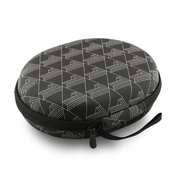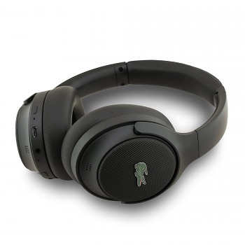 Sluchátka jsou vyvedena v matné černé s jemnou texturou „petit piqué“ připomínající klasický Lacoste polo vzor — malá prošívaná mřížka, která působí luxusně a současně sportovně. Na vnější straně mušlí najdete decentně vyražené logo krokodýla v kontrastním lesku, které je viditelné, ale ne křičí do prostoru. Hlavový most je potažen měkkým materiálem se stejnou piqué strukturou, lemovaný jemným prošíváním. Celkově působí sluchátka kompaktně, moderně a velmi upraveně — ideální k džínům i obleku.
