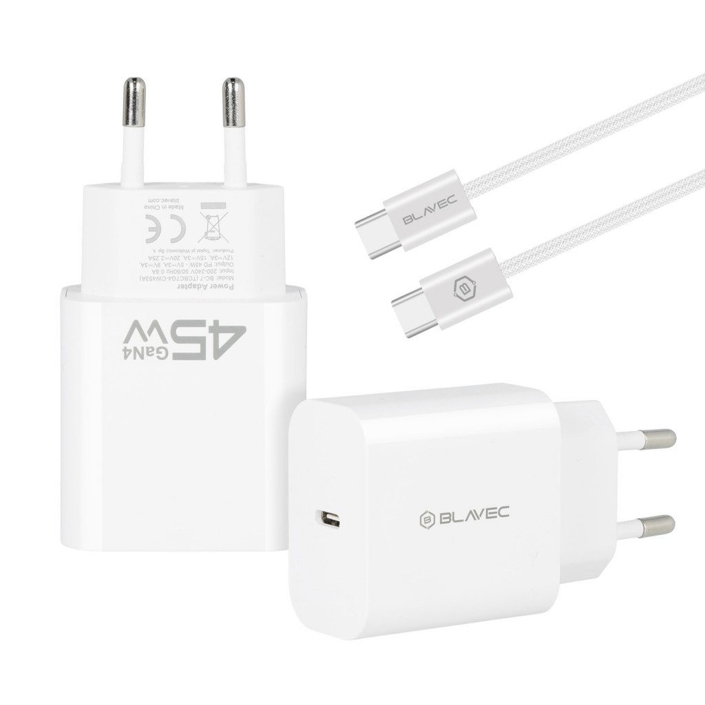 Blavec síťová nabíječka BC-7 GaN4 Type C PD QC 45W 3A s kabelem Type C na Type C bíláPředstavujeme vám Blavec nástěnnou nabíječku BC-7 GaN4, která je ztělesněním moderní technologie a elegantního designu. Tato nabíječka v čistě bílé barvě je navržena pro maximální efektivitu a bezpečnost, a stane se nepostradatelným doplňkem pro všechna vaše mobilní zařízení. Díky svému kompaktnímu a minimalistickému designu s oblými hranami a decentním logem Blavec na boku se perfektně hodí do každého prostředí, ať už doma, v kanceláři nebo na cestách. Součástí balení je i odolný bílý opletený kabel Type C na Type C, který podtrhuje celkový prémiový dojem.