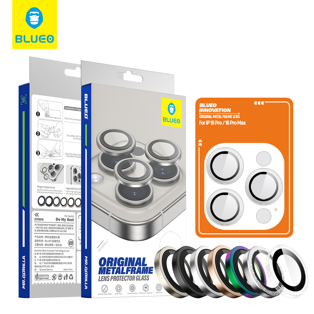 Blueo Original Metal Frame chránič čočky iPhone 16 Pro/Pro Max čirýZajistěte špičkovou ochranu pro objektivy vašeho nového iPhone 16 Pro nebo iPhone 16 Pro Max s chráničem čočky Blueo Original Metal Frame. Tento prémiový doplněk je navržen tak, aby dokonale splynul s designem vašeho zařízení a zároveň poskytl maximální bezpečí pro citlivé fotoaparáty.