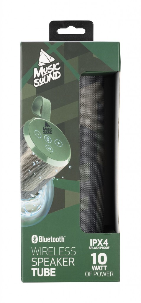 Bluetooth reproduktor Music Sound Tube se skvěle hodí pro domácí poslech i venkovní párty a nabídne perfektní hudební produkci v kompaktním balení. Díky jeho rozměrům ho snadno sbalíte do batohu, i přesto se může pochlubit dostatečně silným zvukem s výkonem 10 W. Připojení přes Bluetooth s vaším telefonem nebo tabletem je otázkou chvilky, pomocí ovládacích tlačítek přímo na reproduktoru pak můžete ovládat hlasitost i pohyb v playlistu. S voděodolností IPX4 se nezalekne ani případného deště nebo cákající vody. Pro snadné přenášení je vybaven i praktickým poutkem.