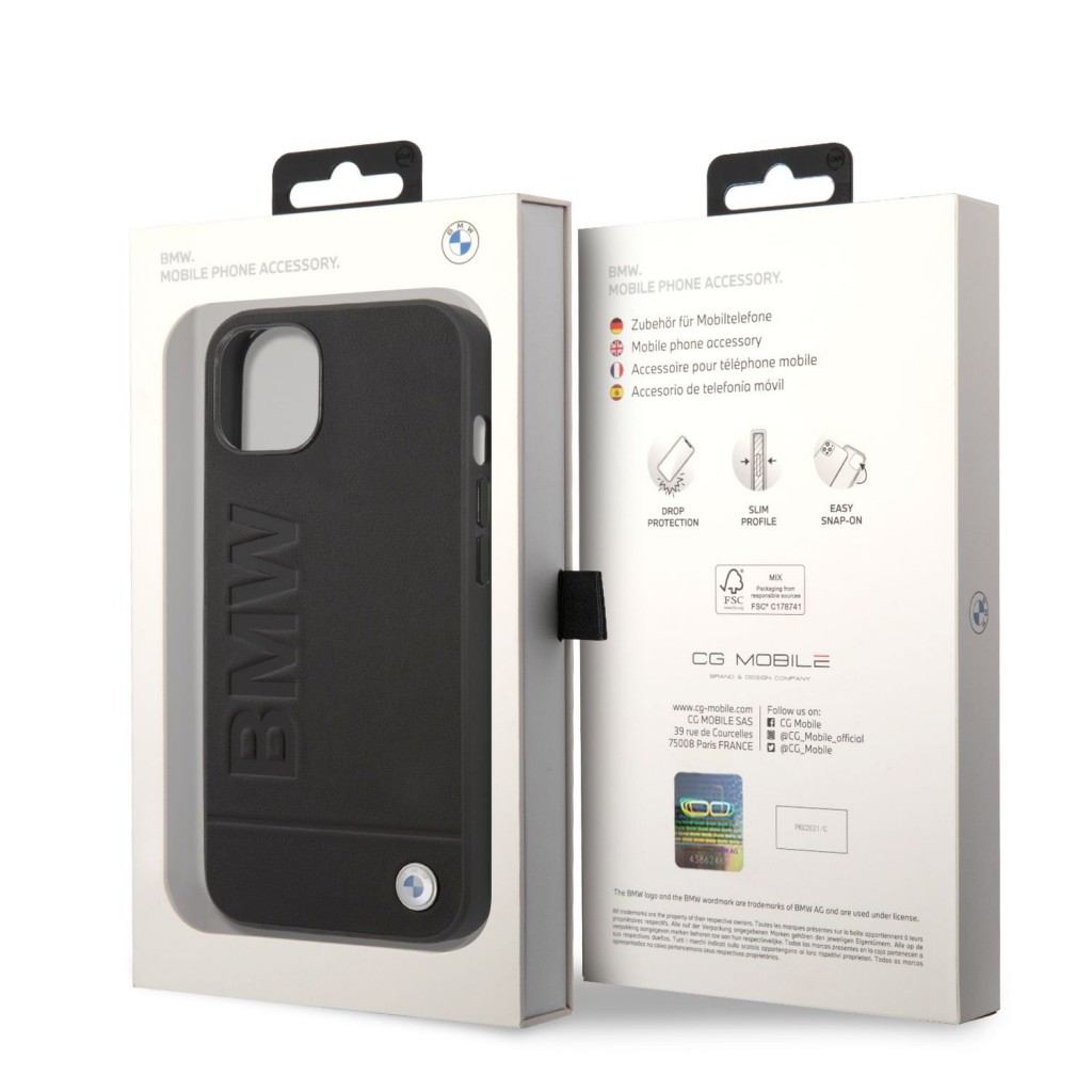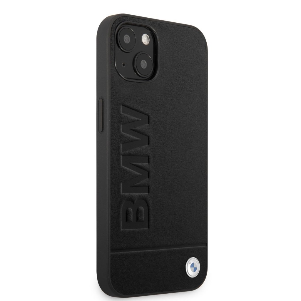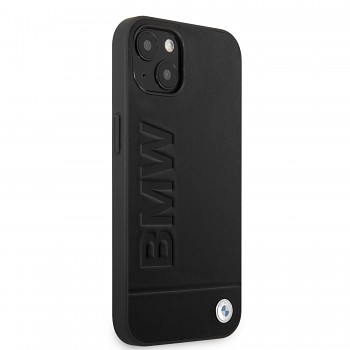 BMW Leather Hot Stamp Zadní Kryt pro iPhone 14 Plus Black