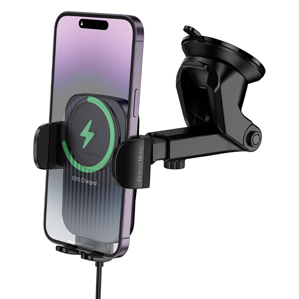 Držák Borofone BH222 se pyšní moderním a minimalistickým designem v kombinaci černé a šedé barvy, který se dokonale hodí do interiéru každého vozu. Jeho robustní konstrukce zajišťuje stabilní uchycení telefonu i na nerovných cestách. Díky bezdrátové technologii s výkonem 15W se váš smartphone bude nabíjet pouhým vložením do držáku, eliminujíc tak potřebu otravných kabelů. Inteligentní mechanismus umožňuje snadné vložení a vyjmutí telefonu jednou rukou, což přispívá k bezpečnější jízdě.
