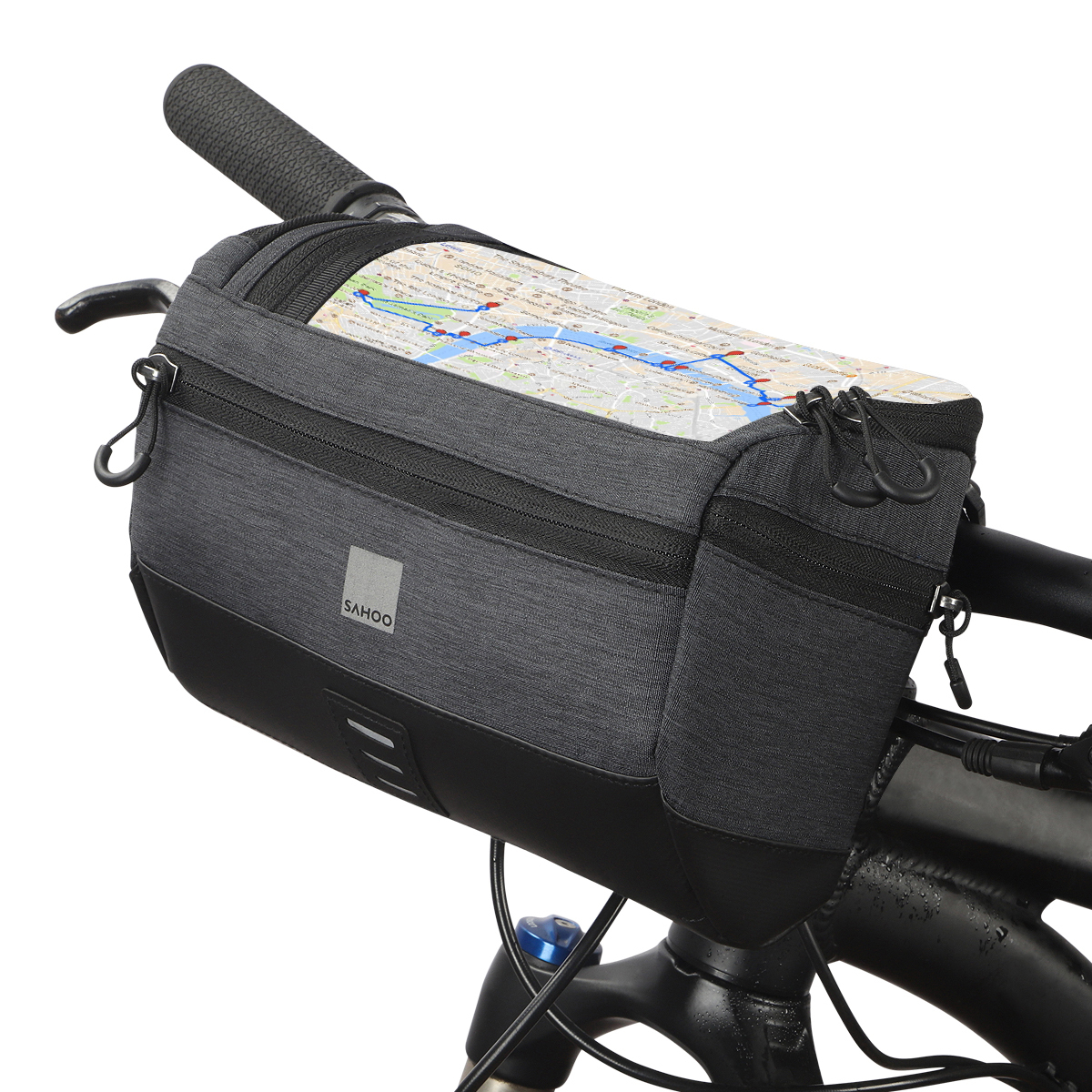 Brašna SAHOO (111459-SA) na řídítka kola šedá 2LVodotěsné pouzdro na kolo o objemu 2 l poskytne dostatek prostoru pro uložení cyklistických potřeb, pumpy, drobného oblečení, mobilu nebo peněženky.