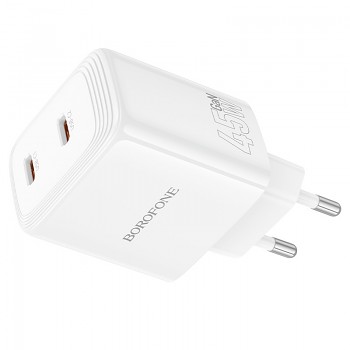 Cestovní adaptér Borofone BN31 Cargador GaN 2xType C - QC 3.0 PD 45W bílýObjevte revoluci v nabíjení s naším Nástěnným nabíječem Borofone BN31! Tento kompaktní a efektivní nabíječ nové generace je navržen tak, aby poskytoval rychlé a bezpečné nabíjení pro dvě zařízení současně.