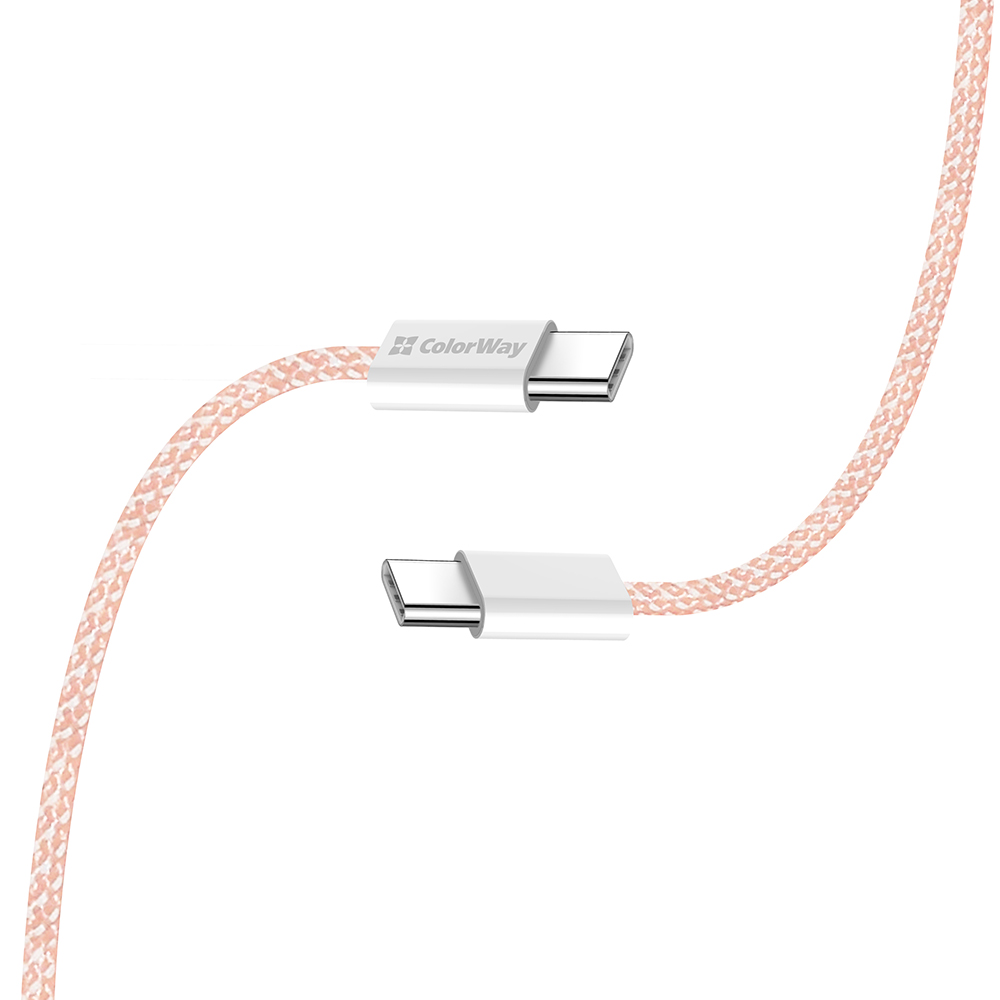 Kabel ColorWay se pyšní nejen svými technickými parametry, ale také atraktivním vzhledem. Je vyveden v jemné růžové barvě s bílými detaily, které mu dodávají moderní a svěží vzhled. Textilní opletení kabelu v kombinaci růžové a bílé barvy nejenže vypadá stylově, ale zároveň zvyšuje jeho odolnost proti opotřebení a zamotání. Konektory jsou v elegantní bílé barvě s lesklými kovovými koncovkami a decentním logem ColorWay, což podtrhuje prémiový dojem celého produktu.