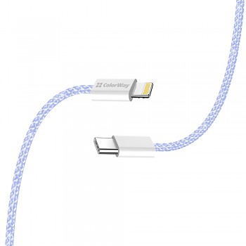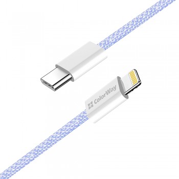 ColorWay Data Cable Type-C to Apple Lightning PD 27W 3A 480Mbps Nylon 1m fialováPředstavujeme datový kabel ColorWay Type-C na Apple Lightning, který je ideální volbou pro rychlé a spolehlivé nabíjení i synchronizaci vašich Apple zařízení. Tento kabel kombinuje vysoký výkon s odolným designem a elegantním vzhledem, což z něj činí nepostradatelného společníka pro každodenní použití.