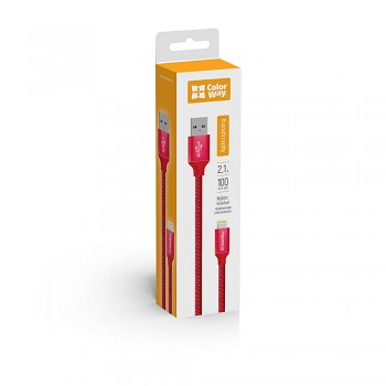 Kabel se pyšní prémiovým zpracováním, které je patrné na první pohled. Jeho výrazná červená barva dodá vašemu zařízení styl a zároveň usnadní jeho nalezení. Opláštění kabelu je vyrobeno z odolného nylonového opletu, který efektivně zabraňuje zamotávání a výrazně prodlužuje životnost kabelu. Díky tomuto materiálu je kabel odolný proti ohybu a opotřebení, což z něj činí spolehlivého partnera pro každodenní používání. Konektory USB-A a Lightning jsou precizně zpracované a na obou koncích je decentně umístěno logo značky ColorWay, což podtrhuje kvalitu a originalitu produktu.