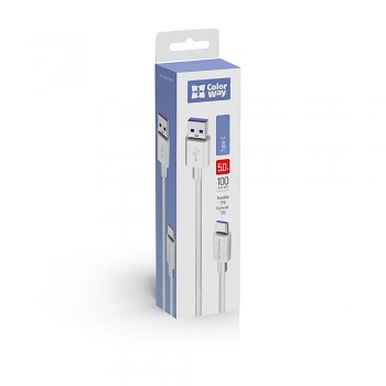 Kabel se vyznačuje minimalistickým a čistým designem v bílé barvě, která se hodí ke každému zařízení. Je vyroben z flexibilního TPE materiálu, který zajišťuje jeho vysokou odolnost proti ohybu a zamotání, čímž prodlužuje jeho životnost. Koncovky kabelu jsou robustní a pevné, s logem ColorWay decentně umístěným na konektoru Type-C. Vnitřní část konektorů je vyvedena v kontrastní fialové barvě, což dodává kabelu moderní a stylový vzhled. S délkou 1 metr poskytuje dostatečnou volnost pro pohodlné používání.