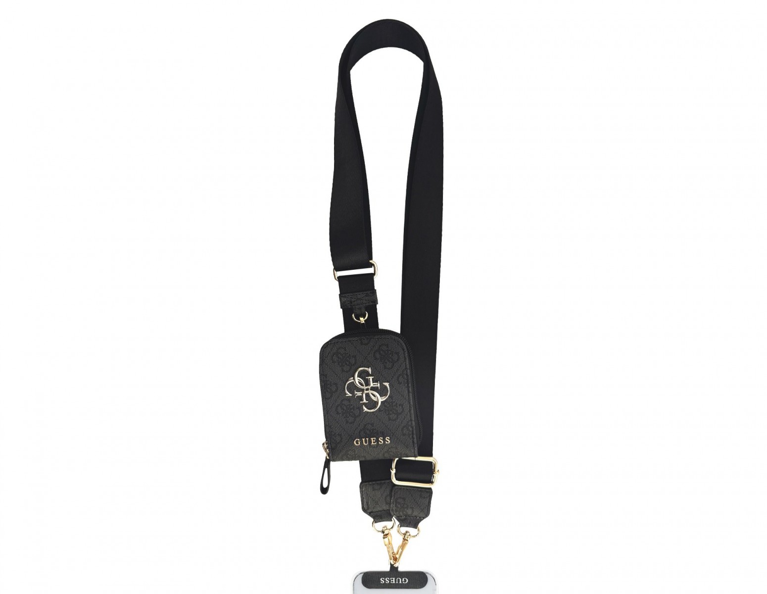Crossbody popruh Guess PU 4G Metal Logo + Peněženka černýElegantní černá sada zdobená tradičním 4G vzorem a zářivými zlatými doplňky.
