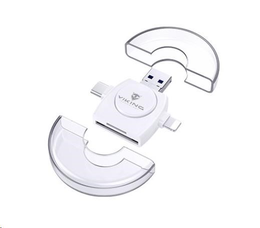 Čtečka značky VIKING disponuje čtyřmi typy konektorů (Apple Lightning, MicroUSB, USB-C, USB-A 3.0), lze ji připojit k počítači, notebooku, nebo k mobilnímu telefonu a tabletu s podporou funkce OTG. Jedná se o velmi rychlou a kompaktní externí čtečku karet.