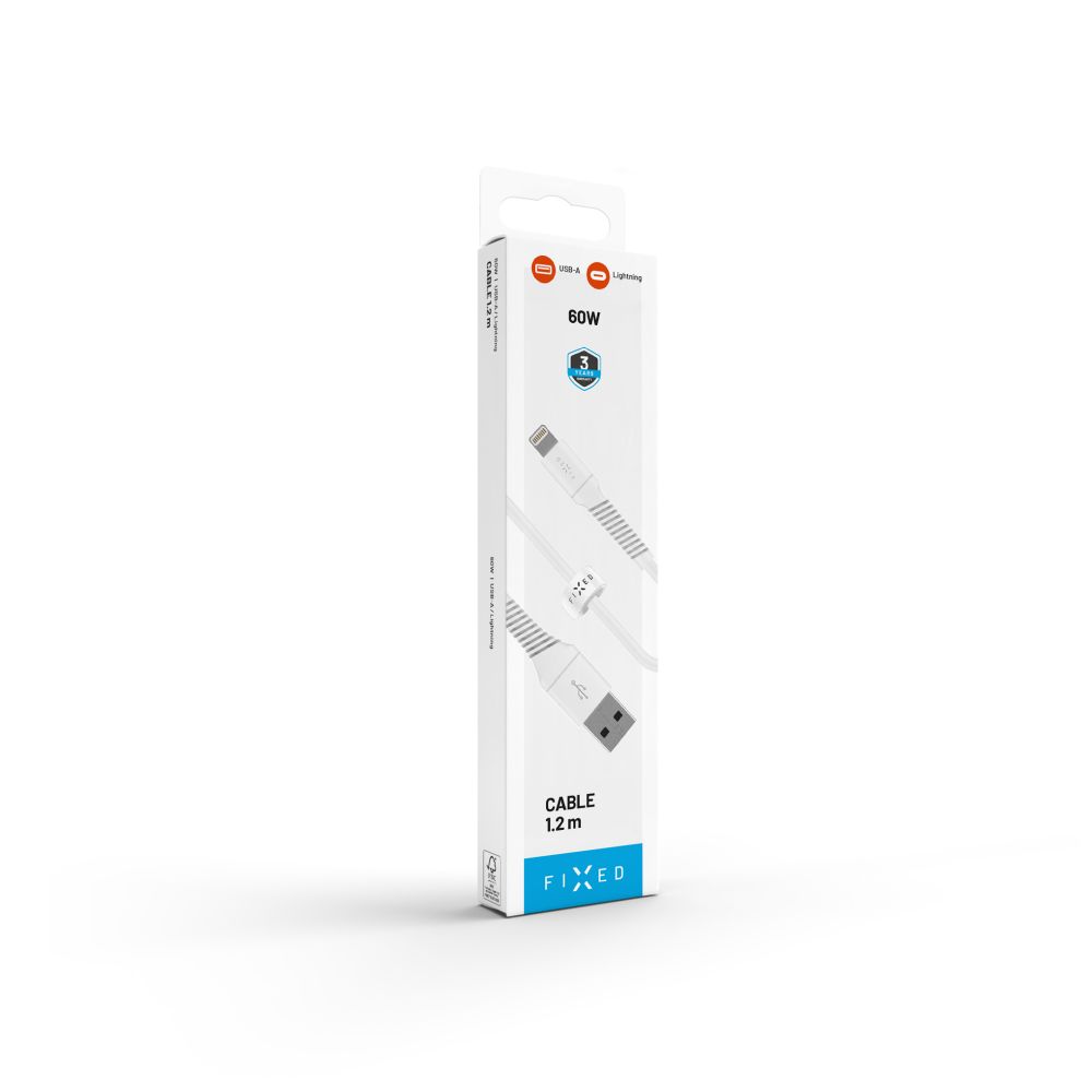 Datový a nabíjecí kabel FIXED s konektory USB/Lightning, 1.2m, USB 2.0, bílýPředstavujeme vám datový a nabíjecí kabel FIXED, který je ideálním a spolehlivým doplňkem pro všechna vaše Apple zařízení s Lightning konektorem. Ať už potřebujete rychle nabít svůj iPhone nebo iPad, nebo přenášet data, tento kabel zvládne obojí s maximální efektivitou a bezpečností.