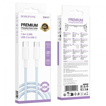 Datový kabel Borofone BX117 Source USB-C - USB-C PD 60W 3A 1m modrýObjevte datový kabel Borofone BX117 Source, který je navržen pro ty, kteří vyžadují rychlost a spolehlivost při nabíjení a přenosu dat. Tento kabel je ideální volbou pro moderní uživatele, kteří chtějí mít jistotu, že jejich zařízení budou vždy připravena k akci.