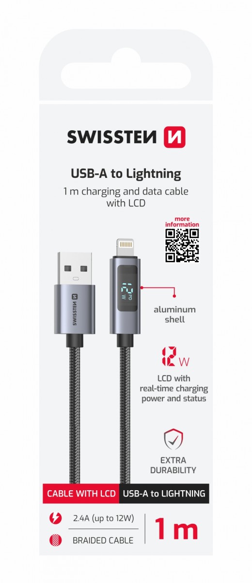 Nečekejte, až se vaše zařízení nabije! S datovým kabelem Swissten LCD USB-A - Lightning 1 m budete mít nabíjení pod kontrolou a navíc stylově.