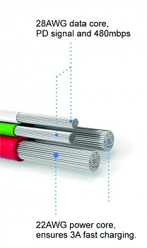 Materiál: TPE plast, textilní opletení, eloxovaný hliník.