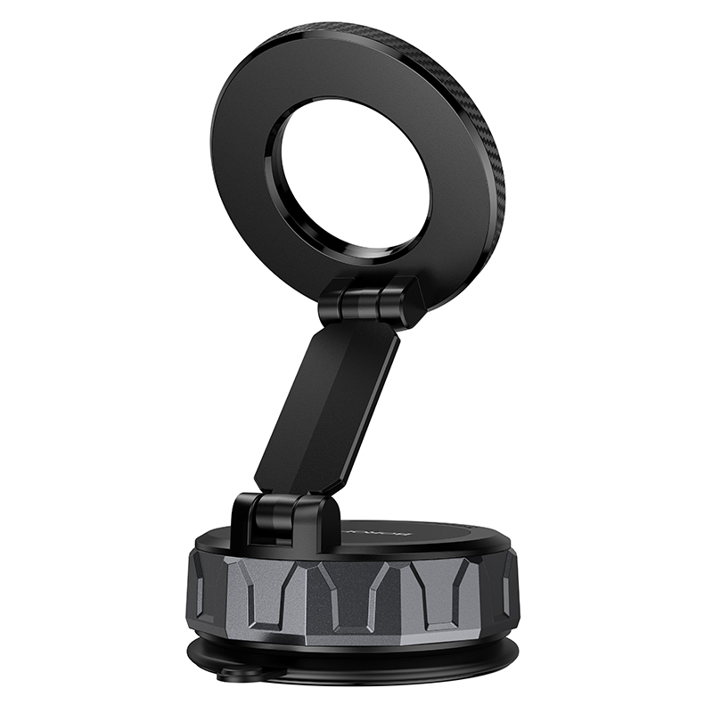 Držák BH140 Gloria se pyšní moderním a minimalistickým designem v elegantní černé barvě. Tělo je vyrobeno z kombinace odolného ABS plastu a nylonu, což zaručuje nízkou hmotnost a zároveň dlouhou životnost. Povrch produktu je ošetřen speciální technologií texturování, která připomíná sluneční vzor, a je zakončen olejovým nástřikem. Tato úprava nejen skvěle vypadá, ale je také odolná proti opotřebení a otiskům prstů. Kompaktní kruhová magnetická hlava pevně drží telefon, zatímco masivní přísavná základna zajišťuje neochvějnou stabilitu.