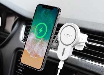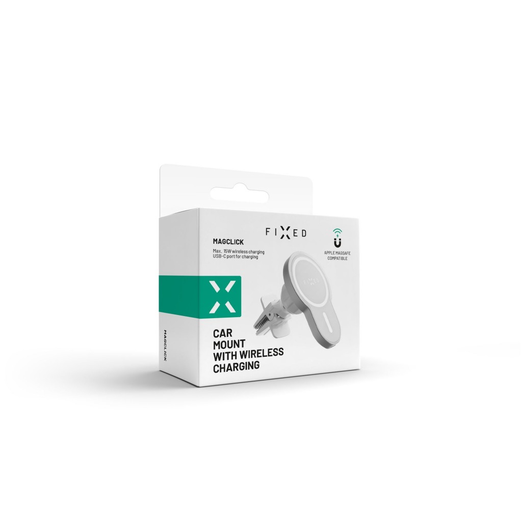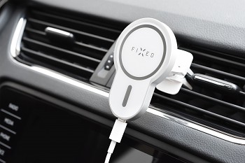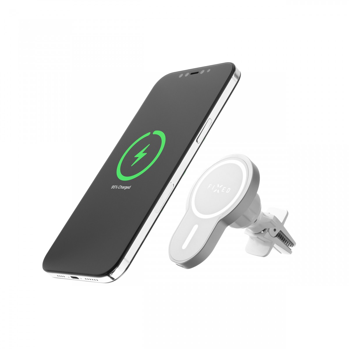 Držák s bezdrátovým nabíjením FIXED MagClick s podporou uchycení MagSafe, 15W, bílý
