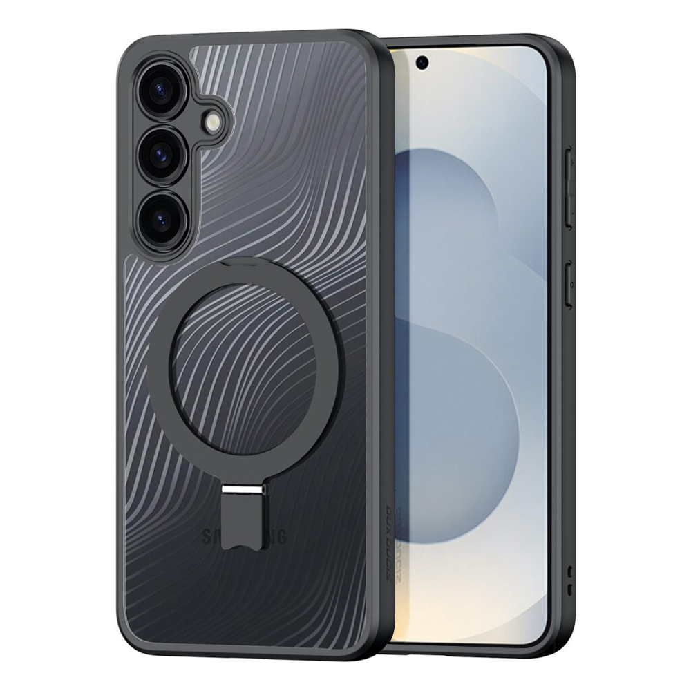 Pouzdro Dux Ducis Aimo MagSafe se pyšní transparentním designem s jemným vlnkovým vzorem na zadní straně, který nechá vyniknout původní krásu vašeho Samsung Galaxy S25 Plus. Černé, flexibilní okraje z prémiového silikonového kaučuku zajišťují pohodlný úchop a snadnou instalaci telefonu. Klíčovým prvkem je integrovaný magnetický kroužek MagSafe, který zajišťuje kompatibilitu s MagSafe příslušenstvím a zároveň slouží jako skládací kovový stojánek. Tento inovativní stojánek umožňuje pohodlné sledování obsahu v režimu na výšku pro online chatování a prohlížení krátkých videí, nebo v režimu na šířku pro sledování filmů.