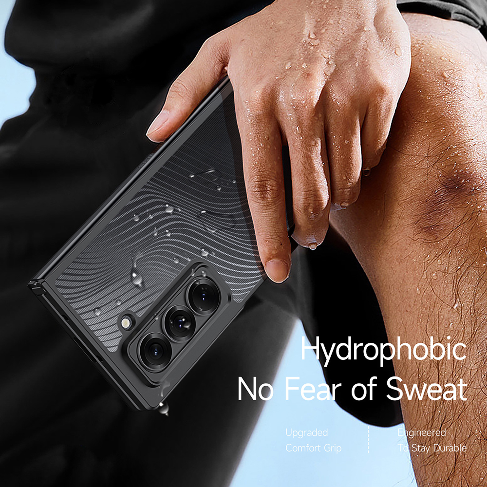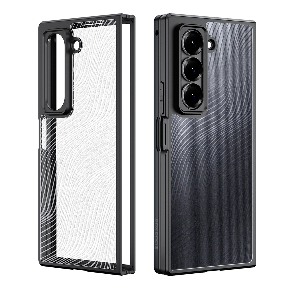 Pouzdro Dux Ducis Aimo Series v černém provedení je navrženo tak, aby dokonale doplňovalo sofistikovaný vzhled vašeho Samsung Galaxy Z Fold SE. Skládá se ze dvou částí, které přesně obepínají obě poloviny skládacího telefonu. Zadní strana pouzdra se pyšní jemnou, vlnitou texturou, která nejenže dodává pouzdru jedinečný estetický prvek, ale také zlepšuje úchop a minimalizuje riziko vyklouznutí.