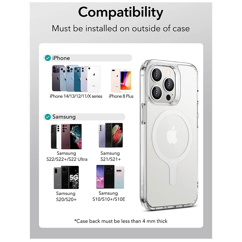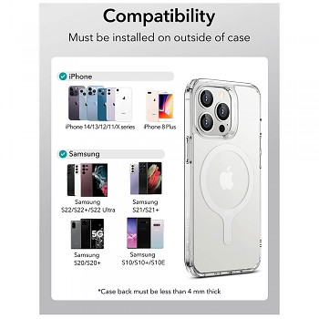 Tento produkt je určen pro širokou škálu telefonů, včetně modelů iPhone 14/13/12/11/X series, iPhone 8 Plus a Samsung S22/S22+/S22 Ultra, S21/S21+, S20/S20+, S10/S10+/S10E.