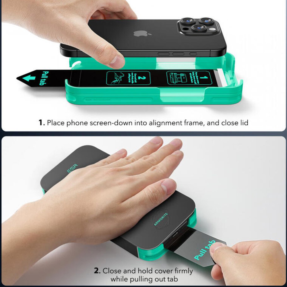 Jednou z největších výhod ochranných skel ESR je přiložený aplikační rámeček. Tento inovativní nástroj zajišťuje snadné, rychlé a především přesné nalepení skla na displej bez vzduchových bublin a prachu. Už žádné frustrující pokusy – s ESR Armorite dosáhnete profesionálního výsledku během několika okamžiků.