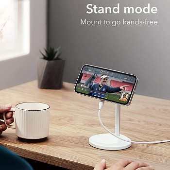 Klíčovou vlastností je flexibilní kloub, který umožňuje otáčení o 360 stupňů a snadné nastavení telefonu do vertikální i horizontální polohy. Ať už sledujete filmy, videohovory nebo pracujete, vždy si najdete ten nejpohodlnější úhel. Součástí balení je také extra dlouhý 1,5metrový kabel, který vám poskytne dostatečnou volnost pohybu a flexibilitu při umístění nabíječky. Funkce "Grab and keep charging" vám umožní snadno zvednout telefon a pokračovat v nabíjení i během hovoru.