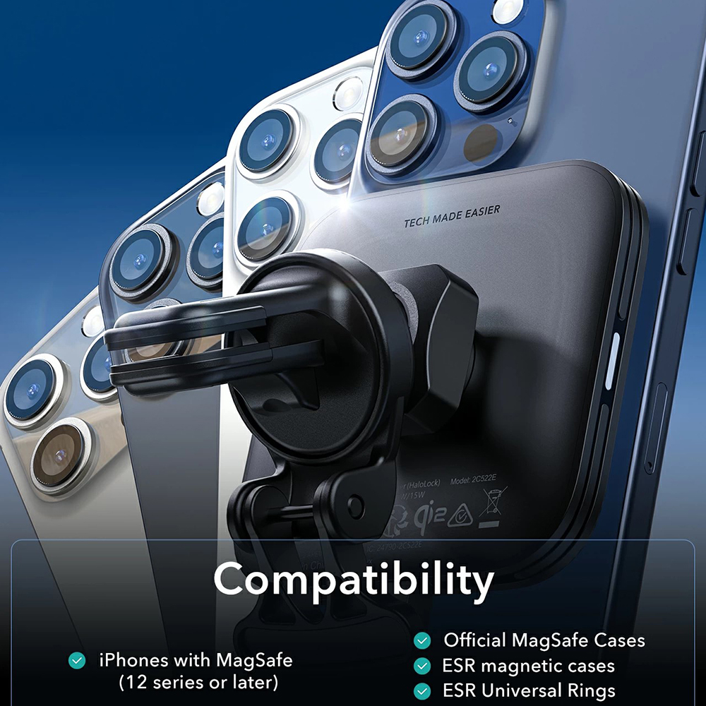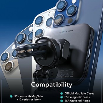 ESR Car Holder s bezdrátovým nabíjením Qi2 HaloLock pro ventilaci černýPředstavte si dokonalou kombinaci bezpečné jízdy a neustále nabitého telefonu. S držákem ESR HaloLock Qi2 pro ventilaci získáte spolehlivého společníka na každou cestu, který se postará o stabilní uchycení a rychlé bezdrátové nabíjení vašeho smartphonu.