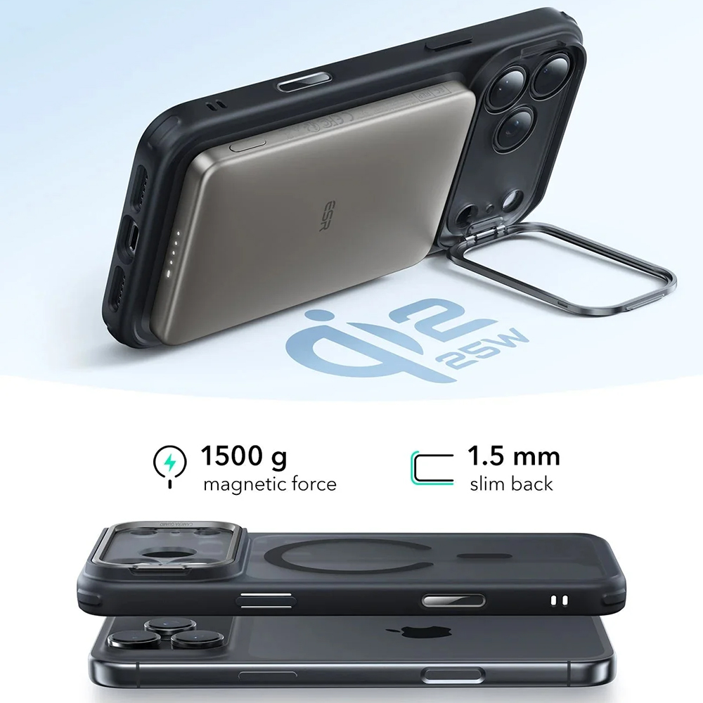 Srdcem tohoto pouzdra je patentovaný systém HaloLock™, ekvivalent technologie MagSafe, který se vyznačuje výrazně silnějšími magnety s magnetickou silou až 1500 g. To zajišťuje bezpečné a stabilní uchycení veškerého MagSafe příslušenství. Inovativní integrovaný stojánek je elegantně skryt v modulu fotoaparátu a umožňuje pohodlné sledování obsahu v režimu na šířku i na výšku. Tento stojánek, oceněný French Design Award 2024 Gold Award, je nejen praktický, ale i stylový.