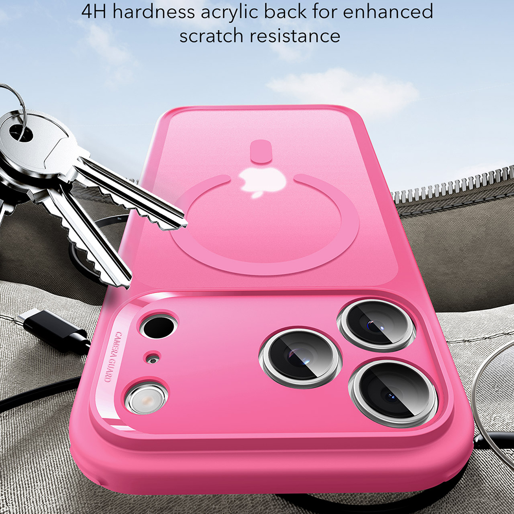 Kryt ESR Classic Hybrid HaloLock pro iPhone 17 Pro se pyšní sofistikovaným designem v matně růžové barvě, která dodává telefonu jemný a moderní vzhled. Zadní strana krytu je vyrobena z průsvitného akrylu s tvrdostí 4H pro zvýšenou odolnost proti poškrábání, což umožňuje prosvítat originálnímu logu Apple a zároveň chrání povrch. Integrovaný magnetický kroužek HaloLock™ je elegantně zapracován do designu a zajišťuje perfektní kompatibilitu s MagSafe příslušenstvím.