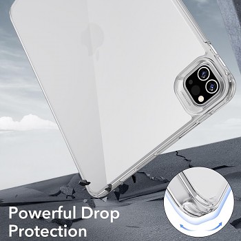 Pouzdro ESR Classic Hybrid se vyznačuje minimalistickým a funkčním designem. Jeho křišťálově čistá zadní strana, vyrobená z odolného polykarbonátu, nechá vyniknout originální barvu a logo vašeho iPadu. Flexibilní TPU rámeček po obvodu zajišťuje snadnou instalaci a demontáž a zároveň poskytuje efektivní tlumení nárazů při pádech. Díky kombinaci těchto materiálů je pouzdro odolné proti poškrábání a žloutnutí, což zaručuje dlouhotrvající průhlednost a estetický vzhled.