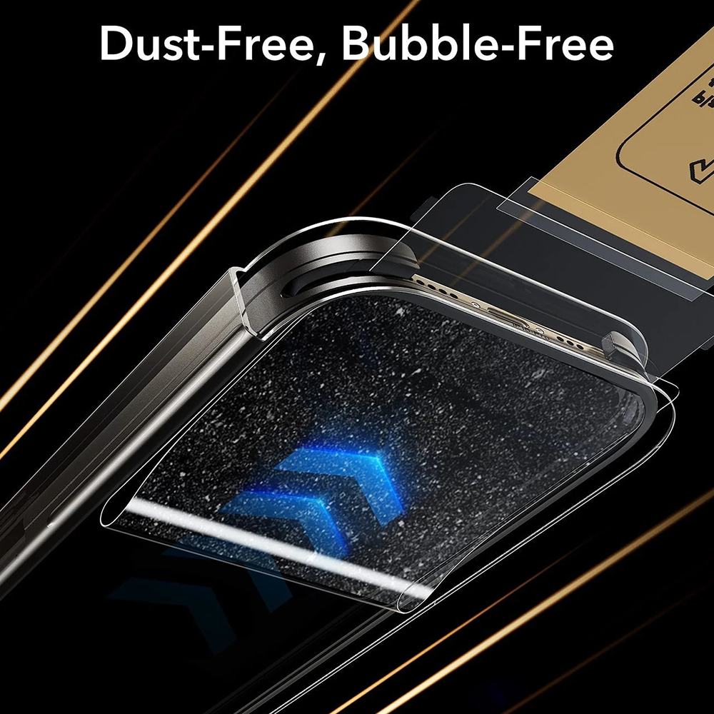 Součástí balení je inovativní aplikační rámeček, který zaručuje snadnou a přesnou instalaci bez vzduchových bublin. Už žádné frustrující pokusy o nalepení – s ESR UltraFit™ to zvládne opravdu každý. Navíc je sklo opatřeno oleofobní vrstvou, která minimalizuje ulpívání otisků prstů a mastnoty, a udržuje tak váš displej stále čistý a průzračný.