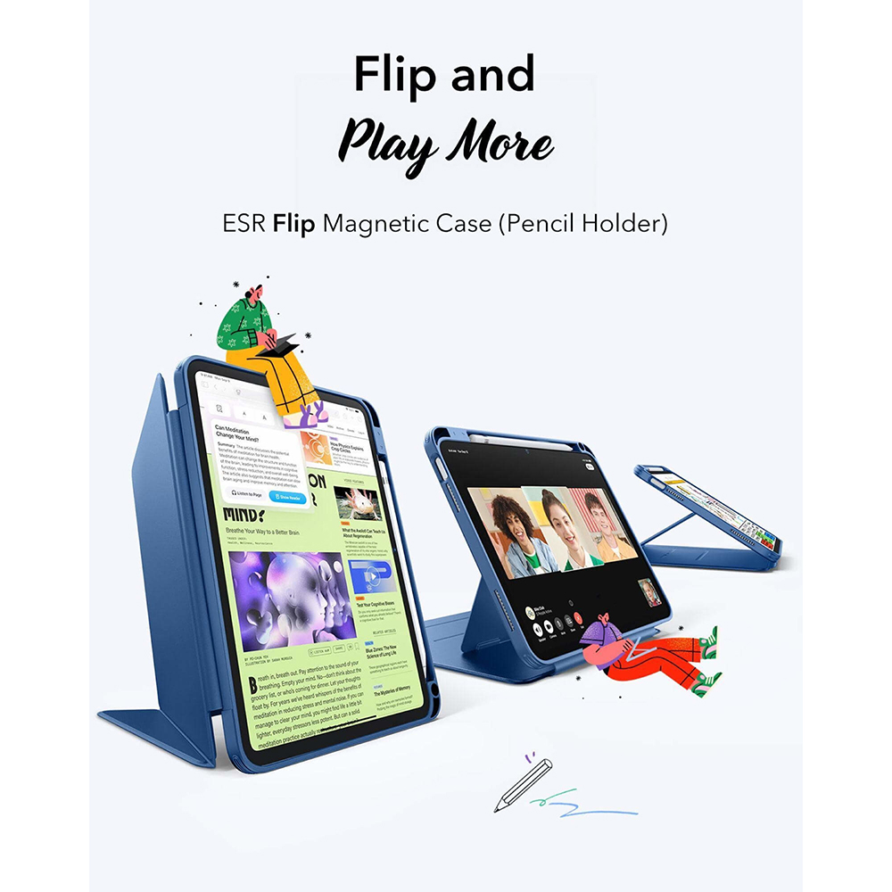 ESR Flip Hybrid s držákem na tužku iPad 10 (2022) 10.9 / 11 (2025) modráObjevte dokonalou kombinaci stylu, ochrany a funkčnosti s pouzdrem ESR Flip Hybrid v elegantní modré barvě. Toto inovativní pouzdro je navrženo tak, aby váš iPad nejen chránilo, ale také výrazně rozšířilo jeho možnosti použití, ať už pracujete, studujete nebo relaxujete.