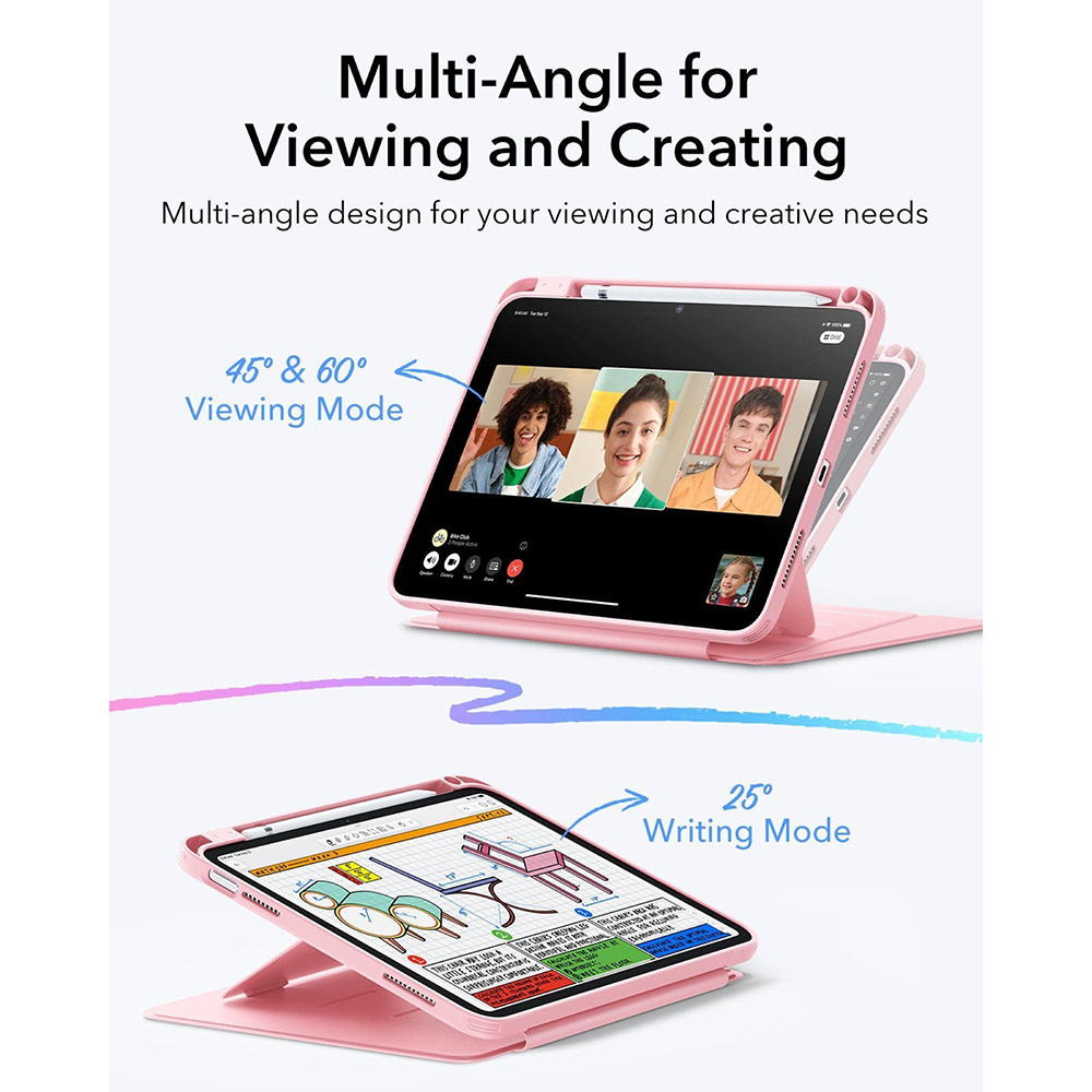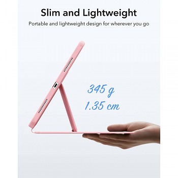Pouzdro ESR Flip Hybrid se pyšní štíhlým a lehkým designem, který nepřidává vašemu iPadu zbytečný objem. S hmotností pouhých 345 g a tloušťkou 1,35 cm (v zavřeném stavu) je ideální pro cestování a každodenní přenášení. Jeho hybridní konstrukce umožňuje snadné přizpůsobení pro různé aktivity. Využijte více úhlů pohledu – ať už potřebujete režim pro sledování (45° a 60°) pro filmy a videohovory, nebo režim pro psaní (25°) pro pohodlné poznámky a kreslení. Integrovaný magnetický uzávěr zajišťuje bezpečné zavření pouzdra a podporuje funkci automatického probuzení/uspání iPadu, čímž šetří baterii.