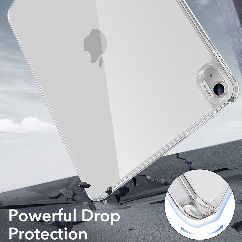 Pouzdro ESR Hybrid se pyšní minimalistickým a funkčním designem. Jeho zadní strana je vyrobena z křišťálově čistého materiálu, který nechá vyniknout originální krásu a barvu vašeho iPadu, včetně ikonického loga Apple. Okraje pouzdra jsou zhotoveny z odolného, mírně ztmaveného materiálu, který efektivně absorbuje nárazy a chrání zařízení před poškozením při pádech. Díky precizním výřezům pro kameru, porty a tlačítka je zajištěn snadný přístup ke všem funkcím iPadu. Pouzdro je navrženo tak, aby bylo tenké a lehké, čímž minimalizuje objem a zachovává pohodlné držení.