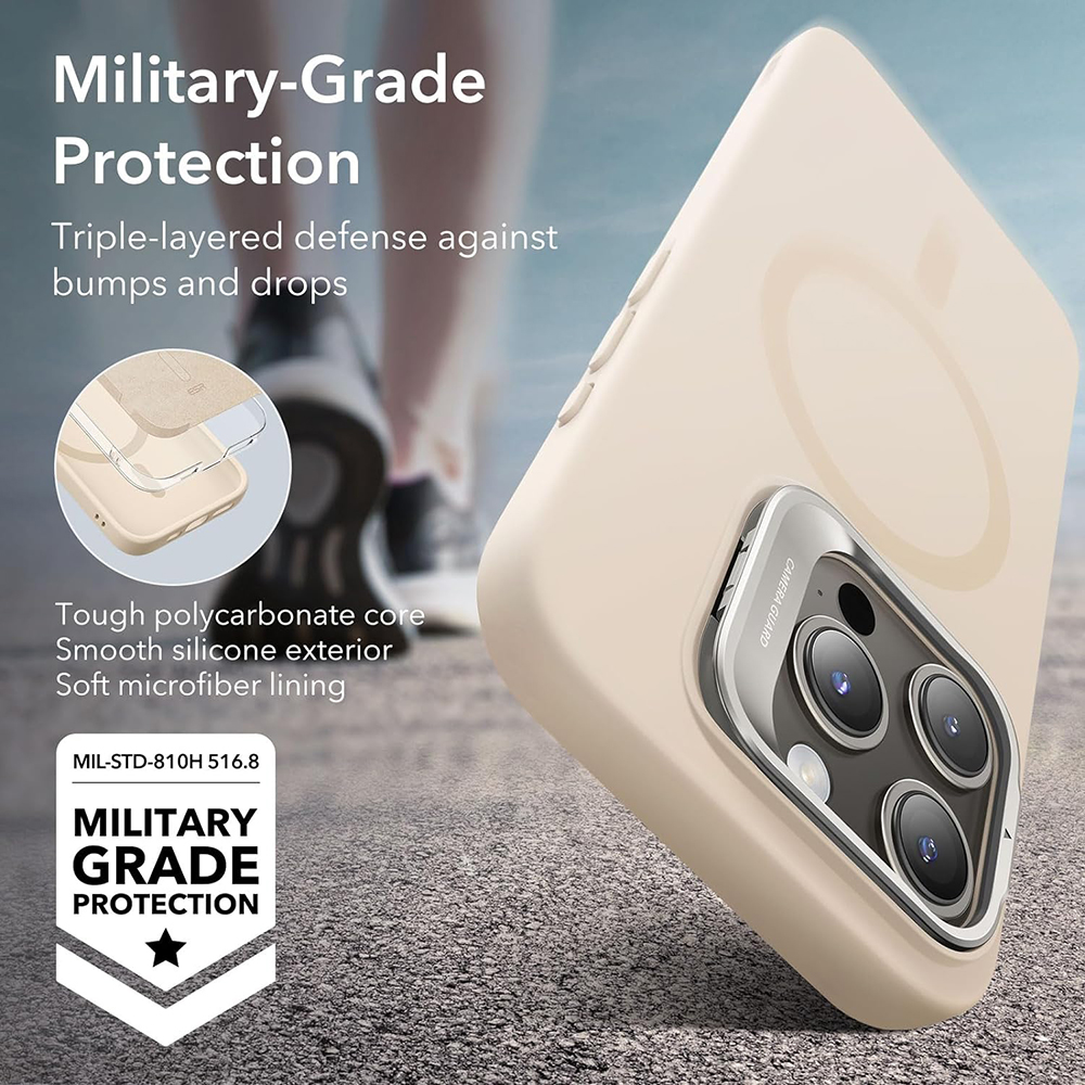 Kryt se pyšní měkkým, na dotek příjemným povrchem, který připomíná obláček a zajišťuje pohodlné držení. Jeho minimalistický design je doplněn o integrovaný kovový stojánek, chytře umístěný kolem modulu fotoaparátu. Tento stojánek umožňuje pohodlné sledování obsahu na šířku i na výšku, a to bez nutnosti držet telefon v ruce. Díky patentovanému systému HaloLock™, který je ekvivalentem technologie MagSafe, se můžete spolehnout na silné a bezpečné magnetické uchycení pro veškeré MagSafe příslušenství. Kryt je precizně zpracován, s přesnými výřezy pro porty a tlačítka, a poskytuje zvýšenou ochranu pro modul fotoaparátu díky vyvýšeným okrajům.
