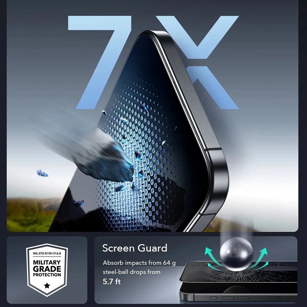 Ochranné sklo ESR Privacy Armorite se pyšní vojenskou úrovní ochrany a je až 7x pevnější než běžná skla. Účinně absorbuje nárazy, například pád 64g ocelové kuličky z výšky 1,7 metru, a chrání displej před poškrábáním od klíčů či jiných ostrých předmětů. Díky celoplošnému pokrytí od okraje k okraji je váš displej chráněn v plném rozsahu. V balení naleznete tři kusy ochranného skla a přiložený aplikační rámeček, který zajišťuje snadné, rychlé a přesné nalepení bez prachu a vzduchových bublin. Černé provedení skla elegantně doplňuje design vašeho zařízení.