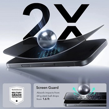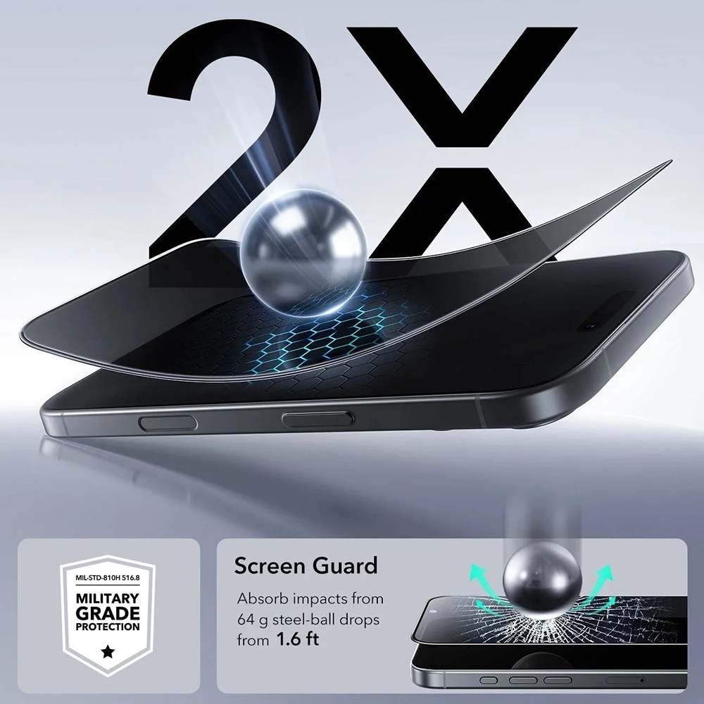 Toto tvrzené sklo nabízí dvojnásobnou pevnost oproti standardním sklům a splňuje normu vojenské odolnosti MIL-STD-810H 516.8. Je navrženo tak, aby absorbovalo nárazy, například pád 64g ocelové kuličky z výšky 1,6 stopy, a efektivně tak chránilo displej před poškozením. S tvrdostí 9H je sklo vysoce odolné proti poškrábání od klíčů, mincí a dalších ostrých předmětů, což udržuje váš displej v bezvadném stavu.