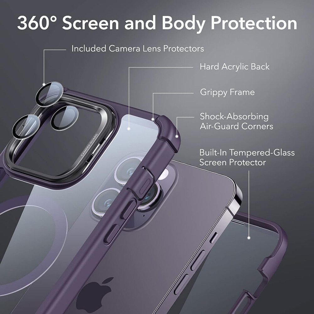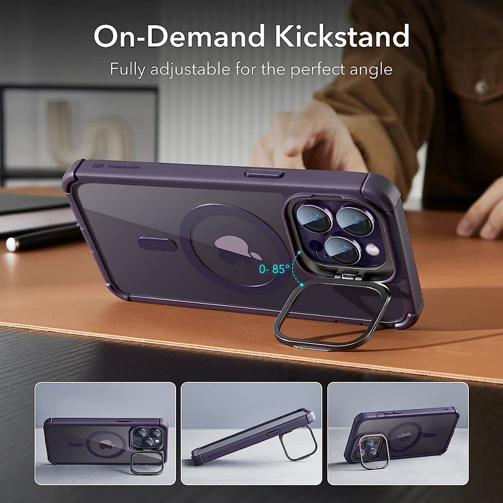 ESR Shock Armor Kickstand HaloLock obal sklo iPhone 14 Pro Max FialováPředstavujeme ESR Shock Armor Kickstand HaloLock + Screen Protector, komplexní ochranu pro váš iPhone 14 Pro Max v elegantním průhledném fialovém provedení. Tento inovativní obal, doplněný o ochranné sklo, je ztělesněním závazku značky ESR k dokonalosti a funkčnosti.