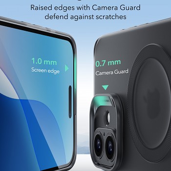 Pouzdro ESR Zero HaloLock se vyznačuje průsvitným matným povrchem, který dodává vašemu iPhone 16 sofistikovaný vzhled a zároveň umožňuje prosvítat originálnímu designu telefonu. Díky matné textuře je kryt příjemný na dotek a odolný proti otiskům prstů, což zajišťuje vždy čistý a elegantní vzhled. Precizní výřezy pro tlačítka a porty zaručují snadný přístup ke všem funkcím telefonu bez nutnosti pouzdro sundávat. Zvýšené okraje kolem displeje a zesílená ochrana modulu fotoaparátu s nápisem "CAMERA GUARD" efektivně chrání tyto nejzranitelnější části telefonu před poškrábáním a nárazy. Integrovaný magnetický kroužek HaloLock™ na zadní straně zajišťuje bezpečné a stabilní uchycení k veškerému MagSafe příslušenství, často s výrazně silnějšími magnety než standardní MagSafe řešení.