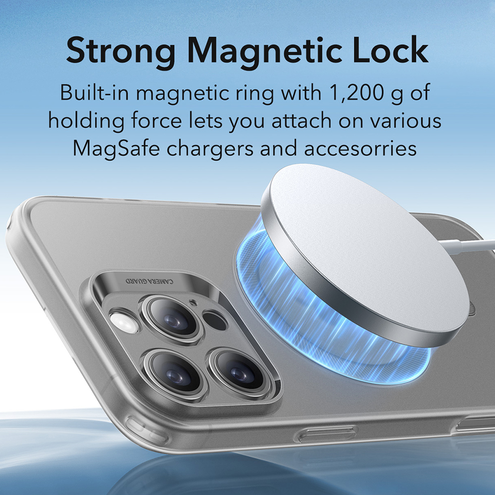 Dominantou tohoto pouzdra je integrovaný systém HaloLock™, který představuje patentovaný ekvivalent technologie MagSafe. Díky výrazně silnějším magnetům než standardní MagSafe zajišťuje HaloLock™ bezpečné a stabilní uchycení veškerého MagSafe příslušenství, od bezdrátových nabíječek po peněženky a držáky. Můžete se spolehnout na pevné spojení a optimální výkon bezdrátového nabíjení. Precizní výřezy pro porty a tlačítka zajišťují snadný přístup a plnou funkčnost telefonu.