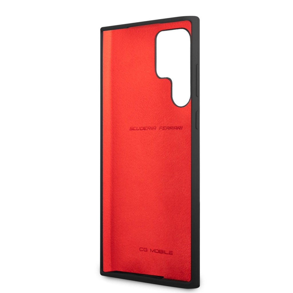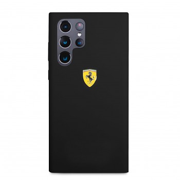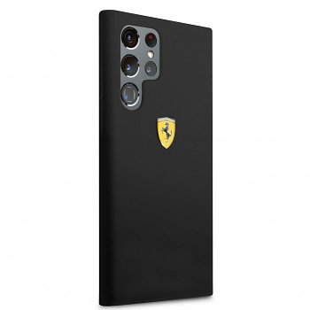 Ferrari Liquid Silicone Metal Logo Zadní Kryt pro Samsung Galaxy S22 Ultra Black