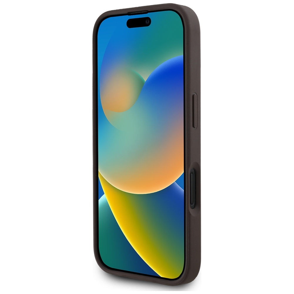 Kryt se pyšní charakteristickým celoplošným monogramem 4G v odstínech hnědé a béžové, který je pro značku Guess tak typický. Uprostřed zadní strany dominuje výrazný kruhový prvek v tmavě hnědé barvě s elegantním nápisem GUESS, který dodává pouzdru punc luxusu a okamžité rozpoznatelnosti. Okraje krytu jsou v jednotné tmavě hnědé barvě, což zajišťuje harmonický a sofistikovaný vzhled. Díky preciznímu zpracování a štíhlému profilu padne kryt perfektně do ruky a nezatěžuje telefon zbytečným objemem. Integrovaná technologie MagSafe zajišťuje snadné a bezpečné přichycení kompatibilního příslušenství a bezdrátové nabíjení. Kryt je navržen pro snadné nasazení a nabízí ochranu proti pádům, přičemž si zachovává nízkou hmotnost a pohodlný úchop.