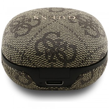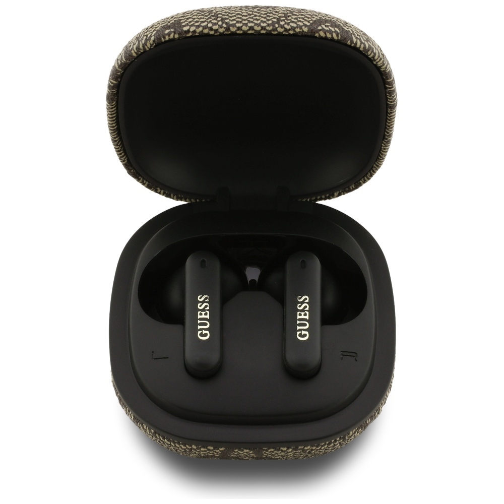 Design sluchátek je inspirován nadčasovým vzorem 4G, který je charakteristickým prvkem značky Guess. Hnědá barva s jemným potiskem loga Guess dodává sluchátkům sofistikovaný a luxusní vzhled. Dominantním prvkem je kovové logo Guess, které je elegantně umístěno na každém sluchátku a podtrhuje exkluzivitu produktu. Ergonomický tvar zajišťuje pohodlné nošení i po dlouhé hodiny, zatímco kompaktní nabíjecí pouzdro se snadno vejde do každé kabelky či kapsy.