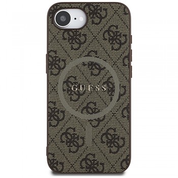 Pouzdro se pyšní charakteristickým designem značky Guess. Celý povrch je pokrytý ikonickým 4G monogramem v hnědých tónech, který dodává krytu sofistikovaný a rozpoznatelný vzhled. Uprostřed zadní strany je elegantně integrován kruhový prvek s nápisem GUESS, který nejenže zdůrazňuje značku, ale zároveň indikuje kompatibilitu s technologií MagSafe pro snadné a bezpečné bezdrátové nabíjení a připojení příslušenství. Hnědé okraje pouzdra pak harmonicky doplňují celkový design a zajišťují pohodlné držení.