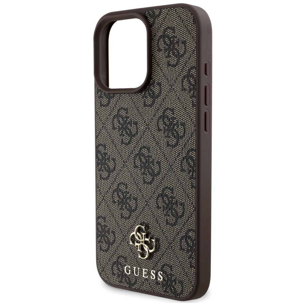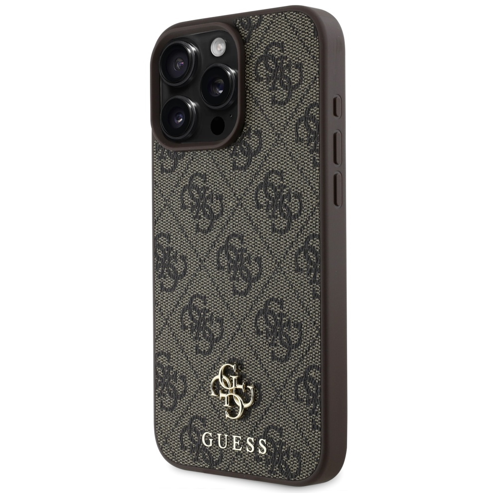 Pouzdro Guess 4G Small and Classic Logo MagSafe se pyšní celoplošným 4G monogramem v hnědých tónech, který dodává telefonu sofistikovaný a luxusní vzhled. Dominantním prvkem je elegantní zlaté logo Guess s propletenými písmeny "G" a nápisem "GUESS" ve spodní části, které okamžitě upoutá pozornost. Pouzdro je vyrobeno z odolného materiálu, který poskytuje spolehlivou ochranu proti poškrábání, drobným nárazům a nečistotám, aniž by zbytečně zvětšovalo objem telefonu. Přesné výřezy zajišťují snadný přístup ke všem portům a tlačítkům. Integrovaná technologie MagSafe zaručuje bezproblémovou kompatibilitu s bezdrátovým nabíjením a MagSafe příslušenstvím, což zvyšuje funkčnost a uživatelský komfort.