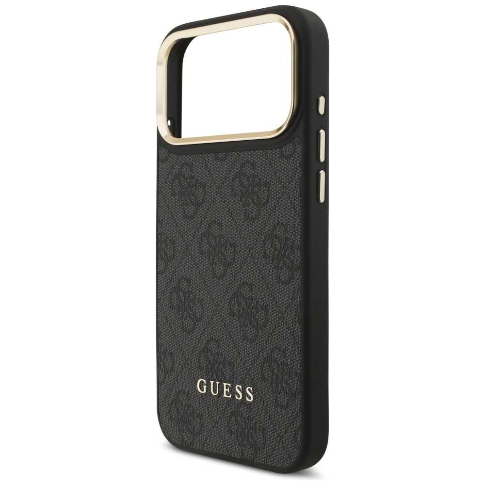 Pouzdro Guess Cardslot 4G MagSafe v elegantní černé barvě je ztělesněním sofistikovanosti. Jeho povrch zdobí charakteristický celoplošný monogram 4G, který dodává pouzdru luxusní texturu a okamžitě rozpoznatelný vzhled značky Guess. Spodní část pouzdra je decentně doplněna zlatým nápisem GUESS, který podtrhuje prémiový charakter produktu.