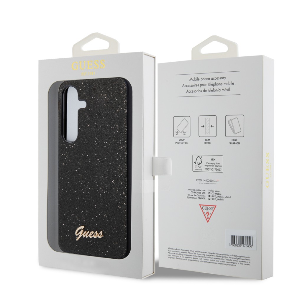 Guess Glitter Script pouzdro Samsung Galaxy S24 černéGuess je ikonická americká módní značka, kterou založili bratři Marcianovi v roce 1981. Ačkoliv se firma celosvětově proslavila především svými inovativními "stone-washed" džínami a provokativními černobílými reklamami, které definovaly image supermodelek 90. let, Guess se rychle stal symbolem mladistvého, sexy a dobrodružného životního stylu. Jejich ikonické logo s otazníkem v trojúhelníku je dnes globálně rozpoznatelným znakem luxusu a sebevědomého módního vkusu.
